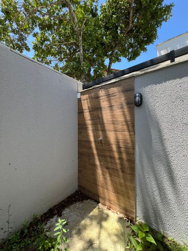 Porta em ACM com fechadura eletrônica, unindo segurança e modernidade.