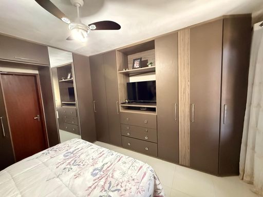 O imóvel apresenta uma excelente distribuição interna. No segundo pavimento, conta com 02 suítes confortáveis, incluindo uma suíte máster com guarda-roupa planejado, proporcionando praticidade e organização. No térreo, há mais 01 quarto, ideal para hóspedes, escritório ou dormitório adicional.