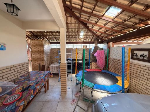 Na área externa, o imóvel oferece lavanderia, espaço gourmet com churrasqueira e lavabo externo, perfeito para receber familiares e amigos com conforto. A garagem é coberta para dois veículos, com possibilidade de acomodar até três carros.