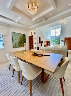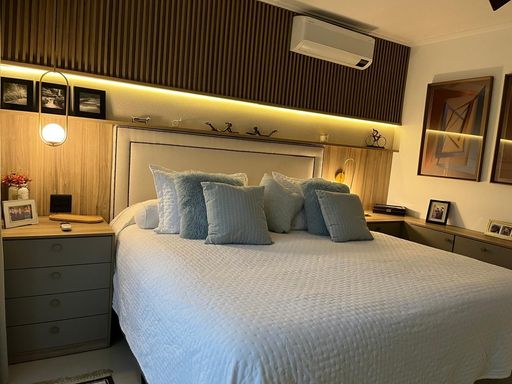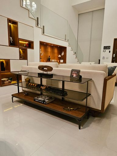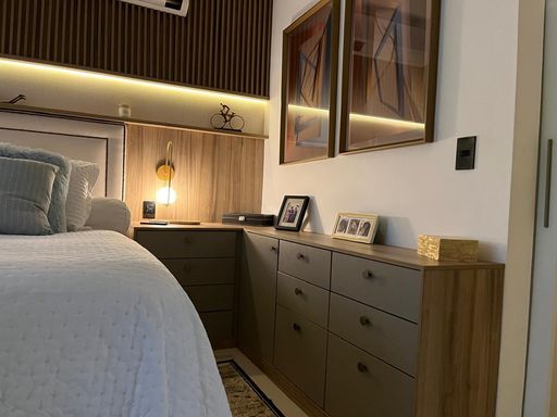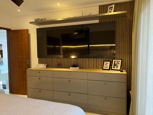 A residência conta com 4 quartos, sendo 3 suítes com closets planejados e ar-condicionado. No pavimento térreo, um quarto foi inteligentemente convertido em escritório, também climatizado, ideal para quem trabalha em home office. As três salas amplas garantem integração, conforto e excelente iluminação natural.