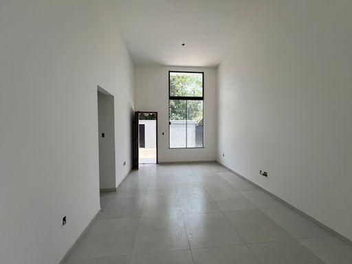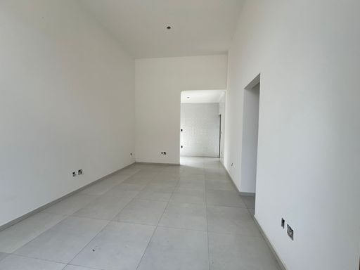 Sala ampla com pé direito alto;